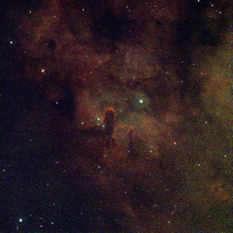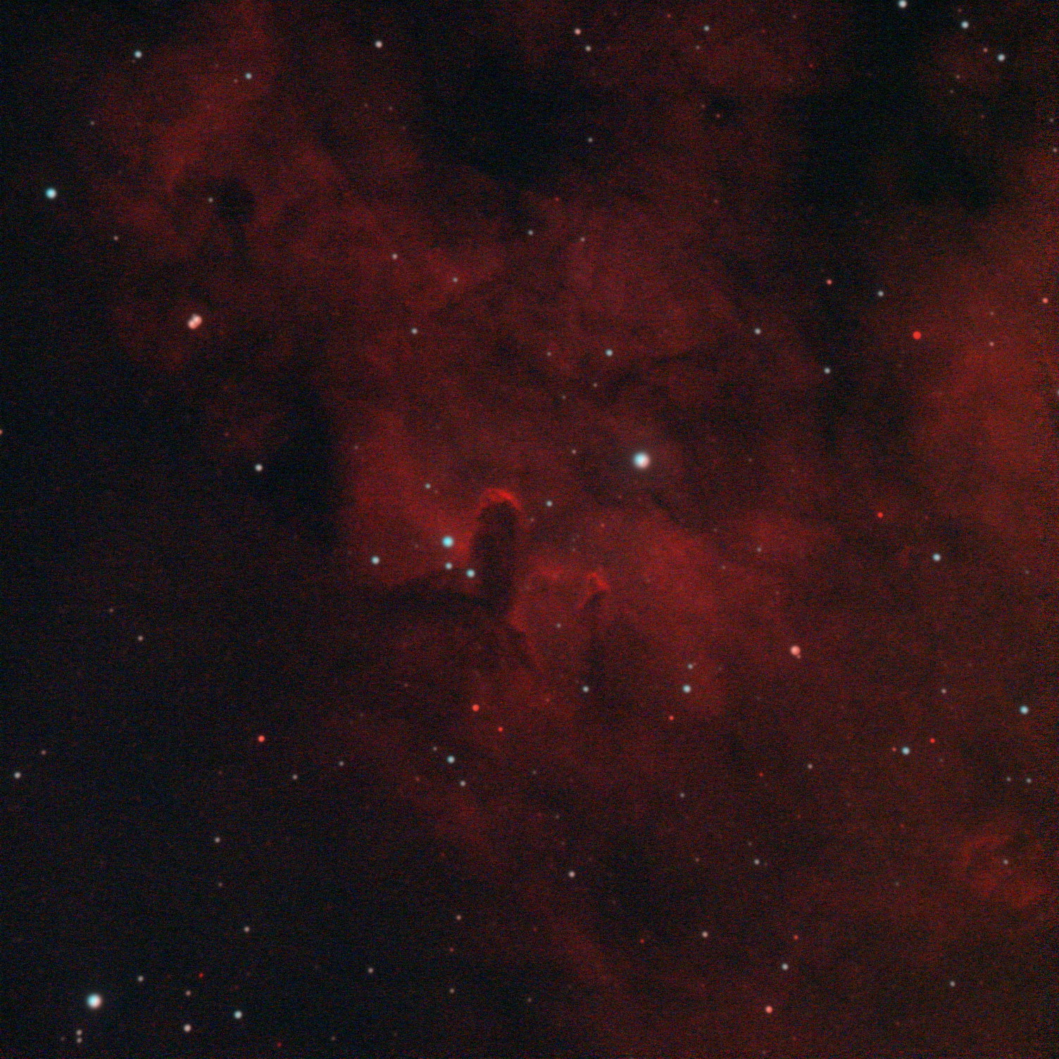 Technically an H-alpha, Oxygen-III, Oxygen-III pallet, but only H-alpha is visible. Not really enough data to bring out the oxygen, but here’s my attempt: