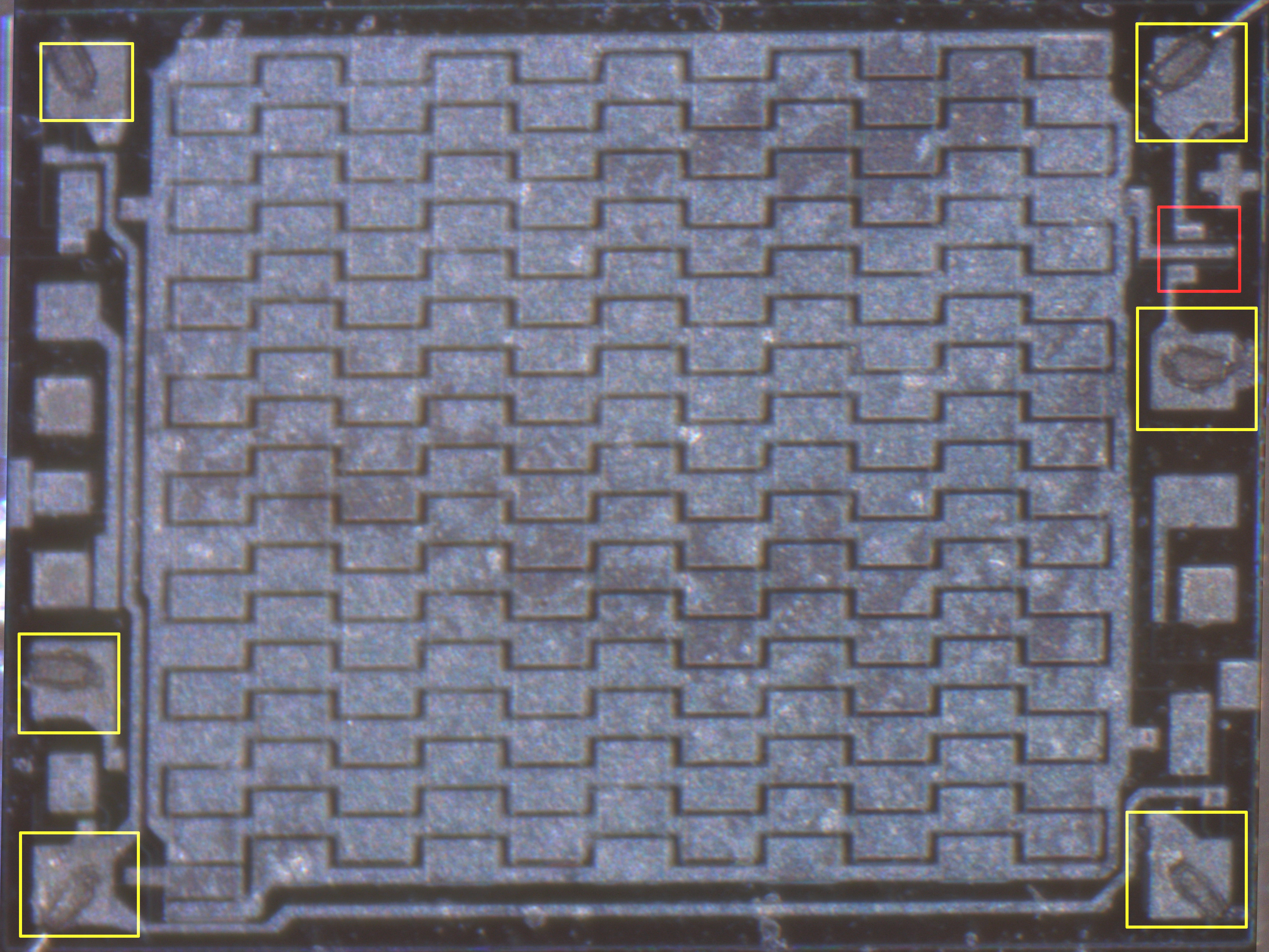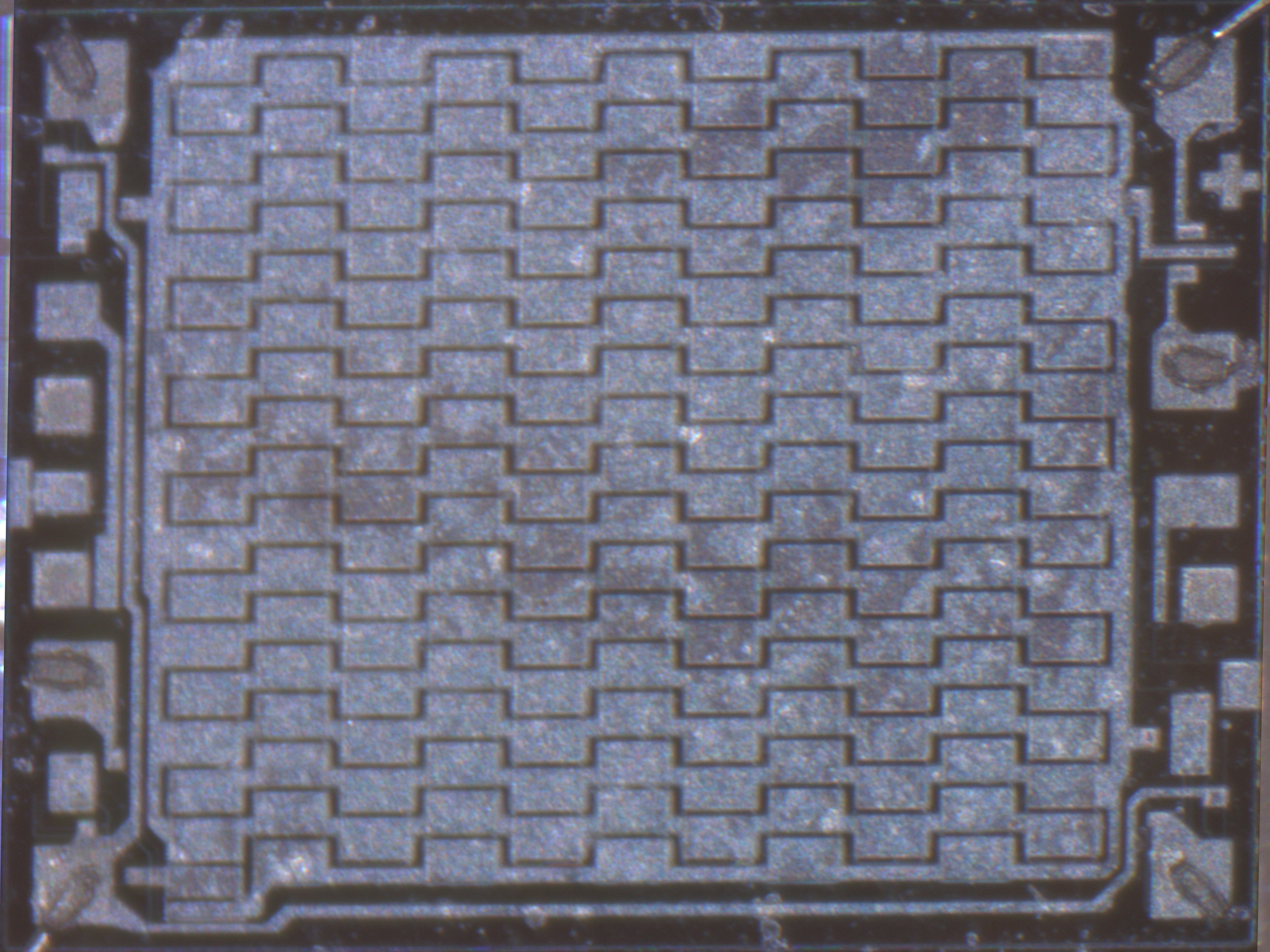 The actual delay line (center) is almost completely covered in metal, so I etched it away with phosphoric acid: