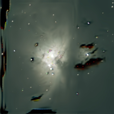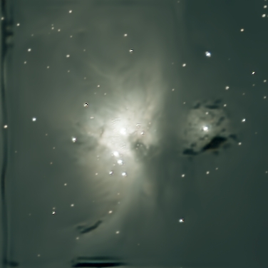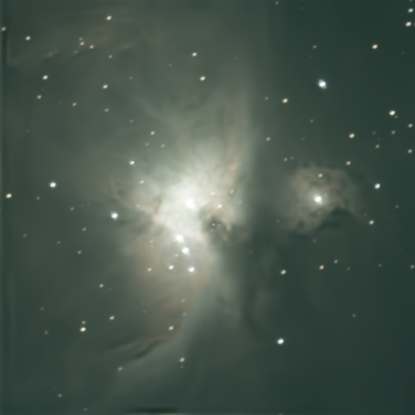 I started with a single 10-second exposure of the Orion Nebula, down-sampled to 375x375 pixels to keep processing times reasonable: